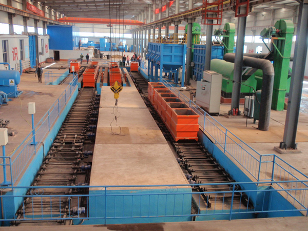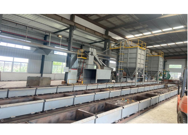 在建河南立德金屬材料科技有限公司3工位半自動(dòng)消失模生產(chǎn)線、該線配置先進(jìn)新型水浴滾筒、…